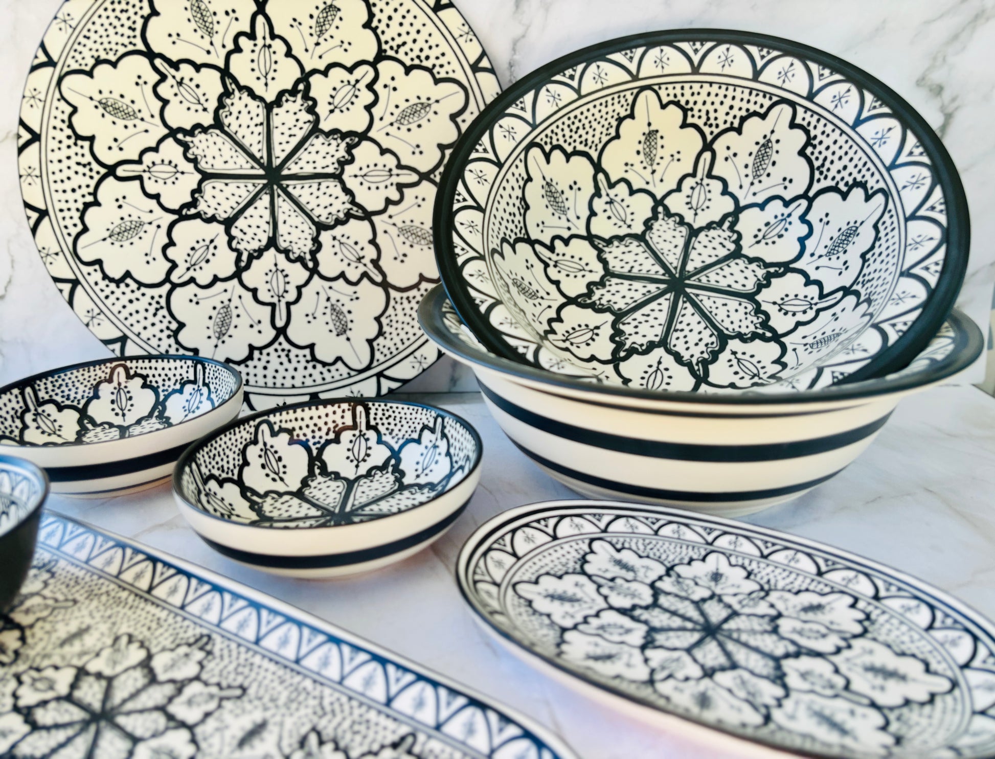 Add a touch of charm to your table with the Aleah Ceramic Bowl, featuring a hand-painted black and white floral motif. Ideal for serving dips, snacks, or individual portions. Pair it with other pieces from the Aleah collection for a beautifully coordinated table setting.