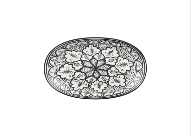 Elegant and versatile, this 12x20.5cm ceramic serving plate features a delicate floral pattern in black and white hues. Perfect for entertaining or everyday use, it adds a touch of sophistication to any table setting. Durable and stylish, it’s ideal for serving appetisers, desserts, or side dishes.