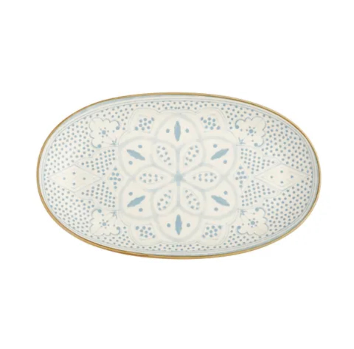 Elegant and versatile, this 12x20.5cm ceramic serving plate features a delicate floral pattern in soft blue hues. Perfect for entertaining or everyday use, it adds a touch of sophistication to any table setting. Durable and stylish, it’s ideal for serving appetisers, desserts, or side dishes.