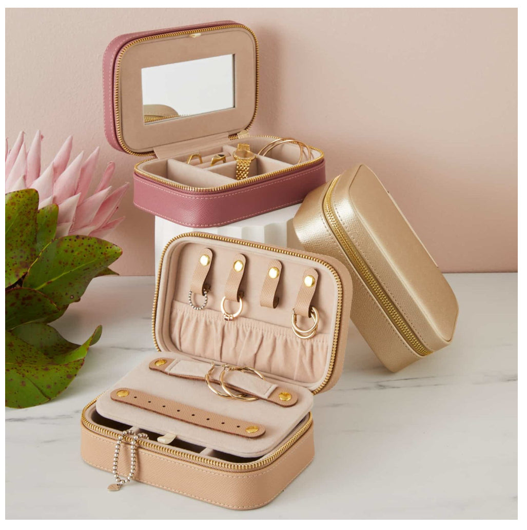 The Amara Cosmetic & Jewellery Holder Case’s simple and compact design makes it ideal for carrying makeup and jewellery wherever you go. The structured base is designed to organise jewels, with built-in soft suede compartments to keep jewels secure and easily accessible, while the top secure zip bag is ideal for storing makeup and cosmetic brushes.