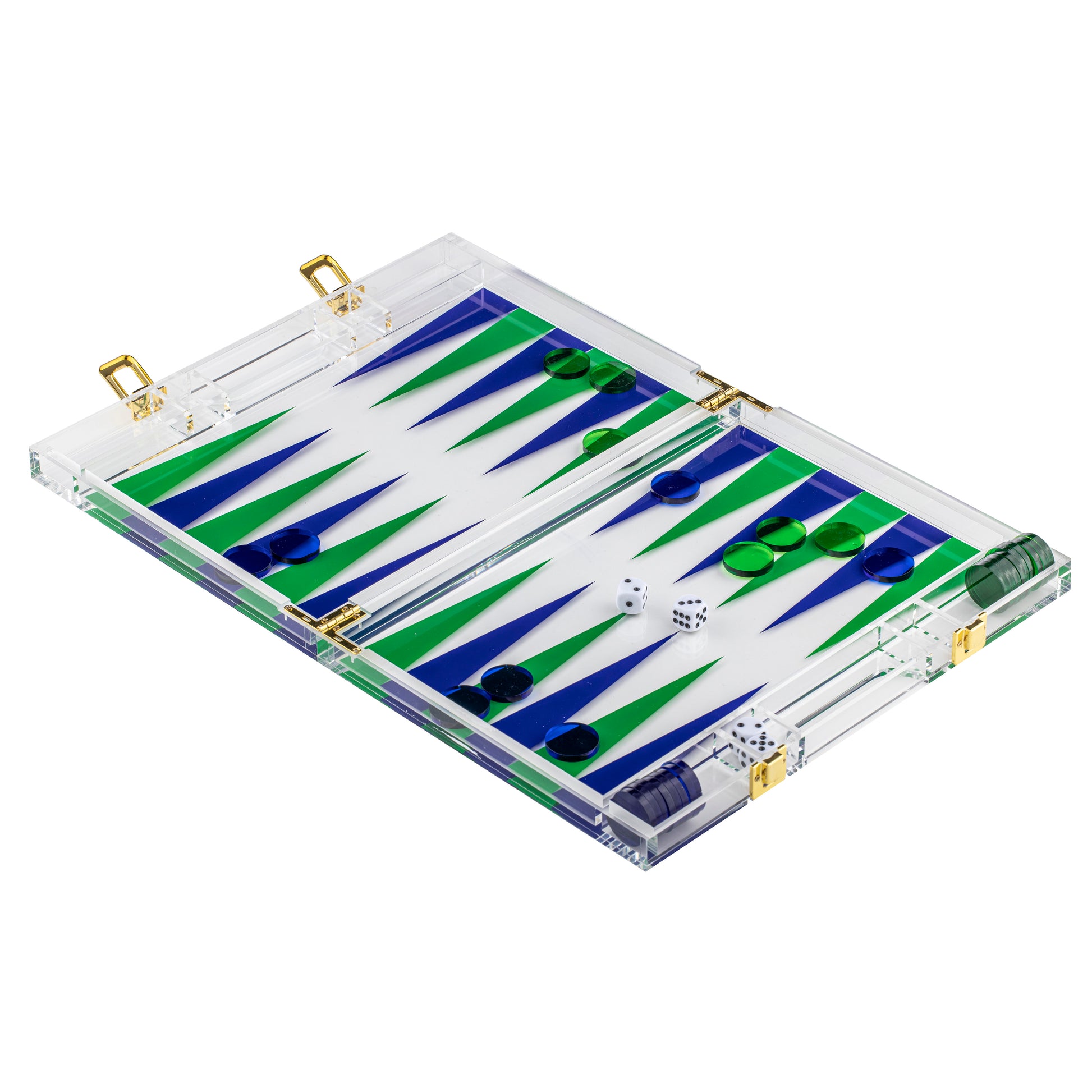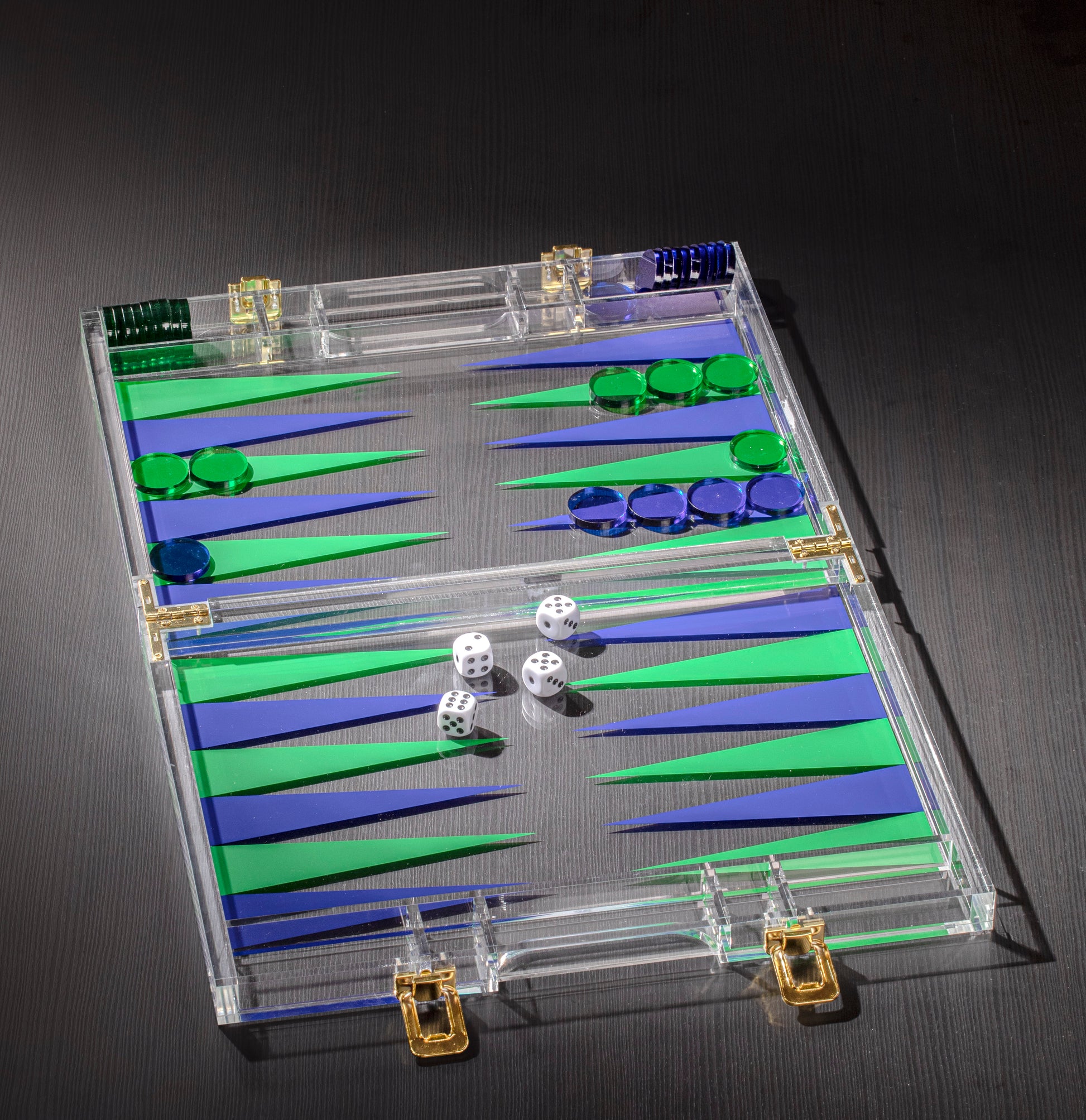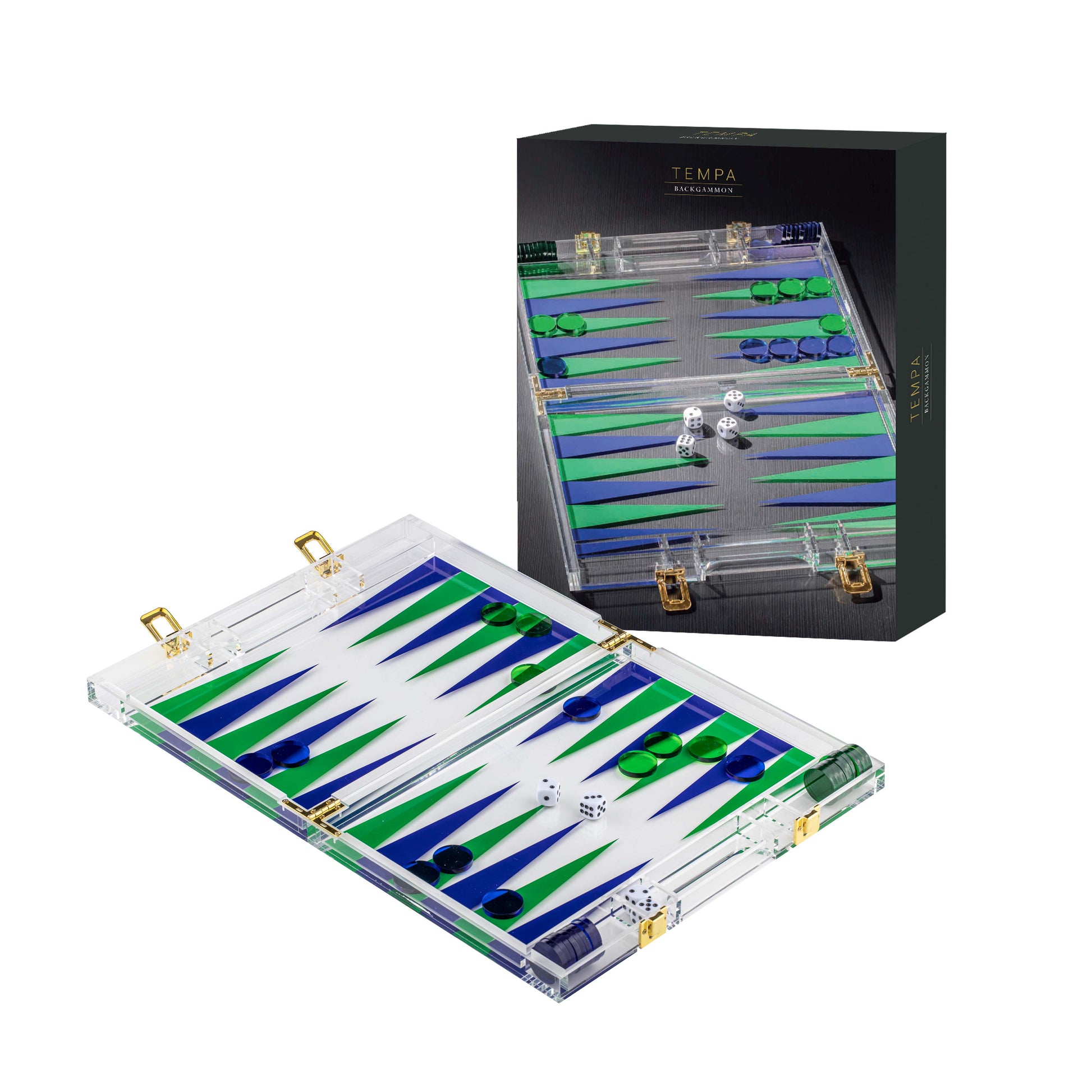 - Acrylic case folds out as the playing board