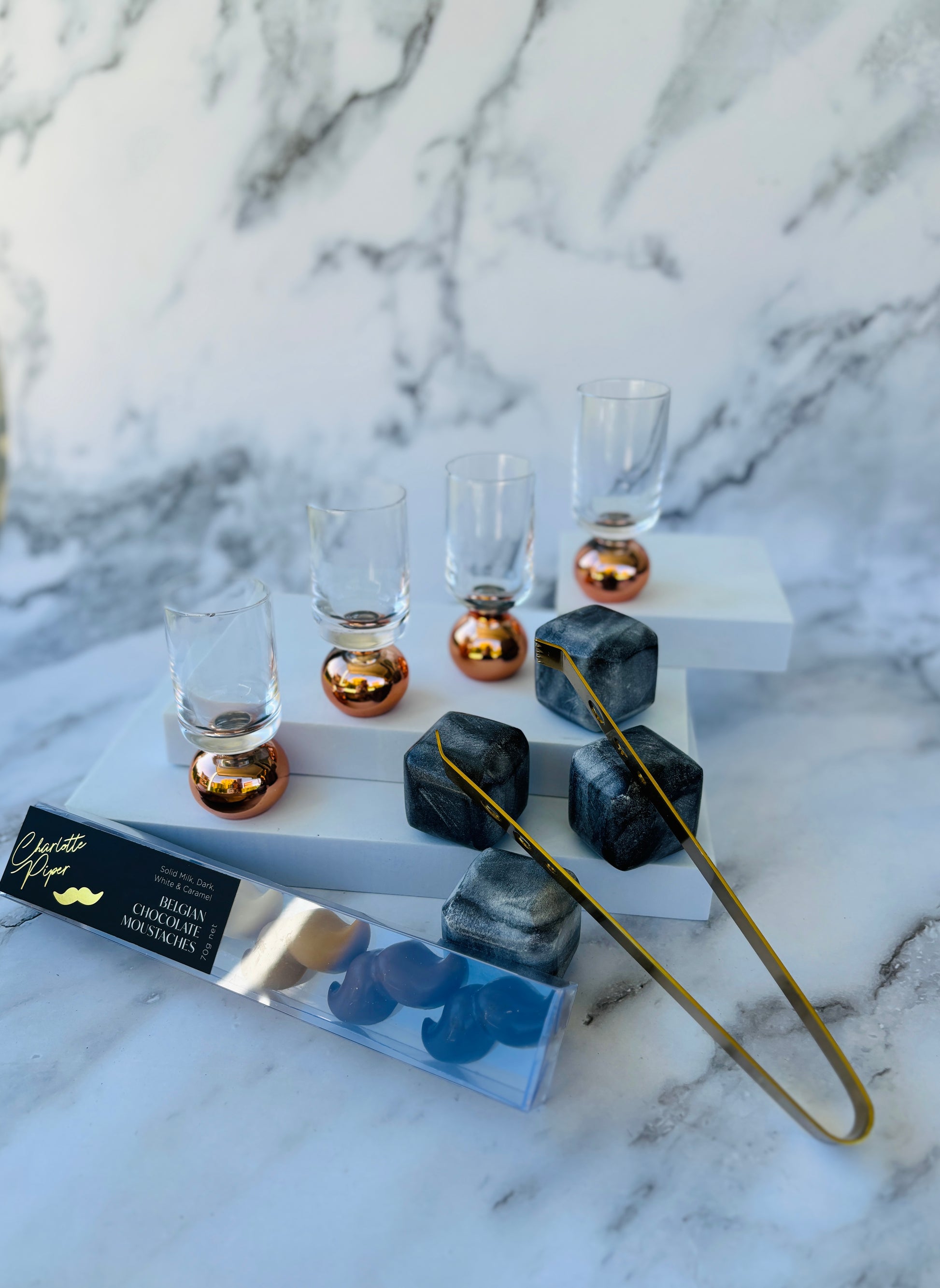 1 x Belgian Chocolate Moustaches: Add a touch of whimsy to your indulgence with these Belgian Chocolate Moustaches. These solid chocolates are crafted from premium Belgian chocolate and come in an assortment of milk, dark, white and caramel flavours, offering a variety of rich and creamy tastes to enjoy.