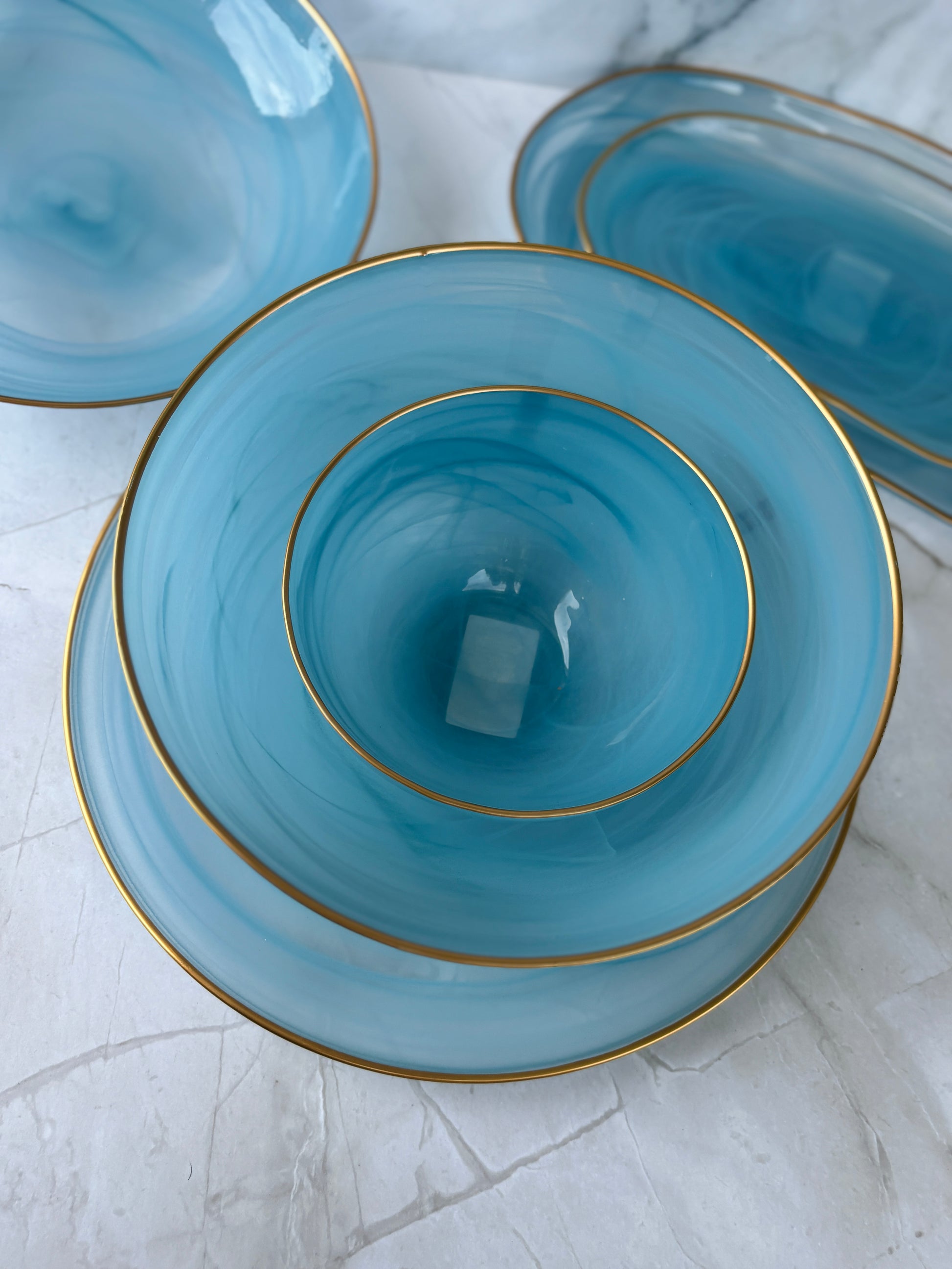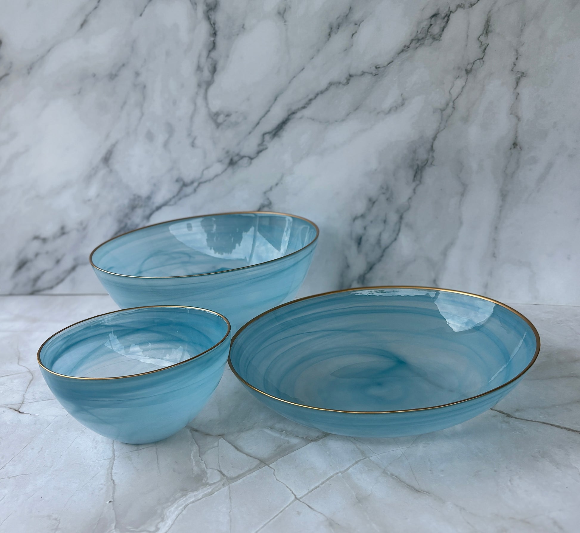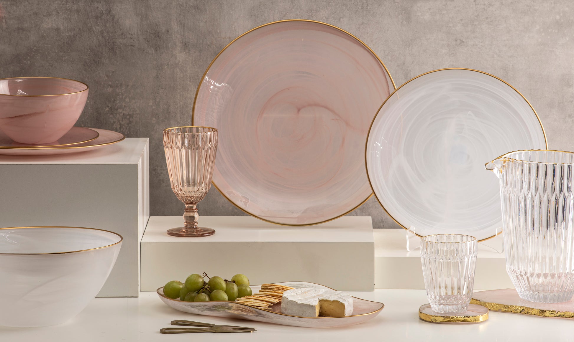 Featuring opulent swirls of colour and soft gold rims, Ismay is sure to be a head turner at your next gathering. There’s an array of platters and bowls in all shapes and sizes on offer, in two gorgeous pastel colours to coordinate with any dinnerware.