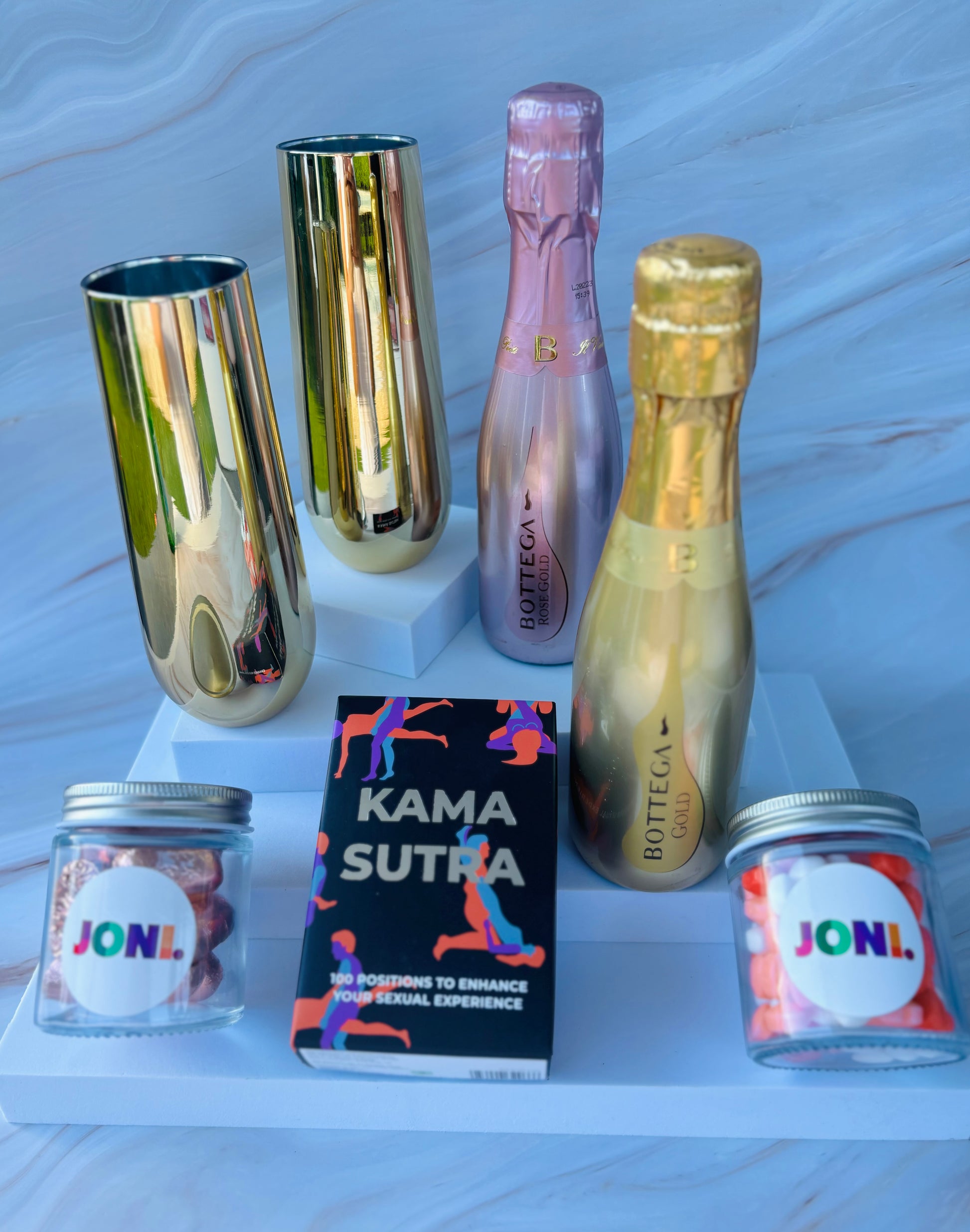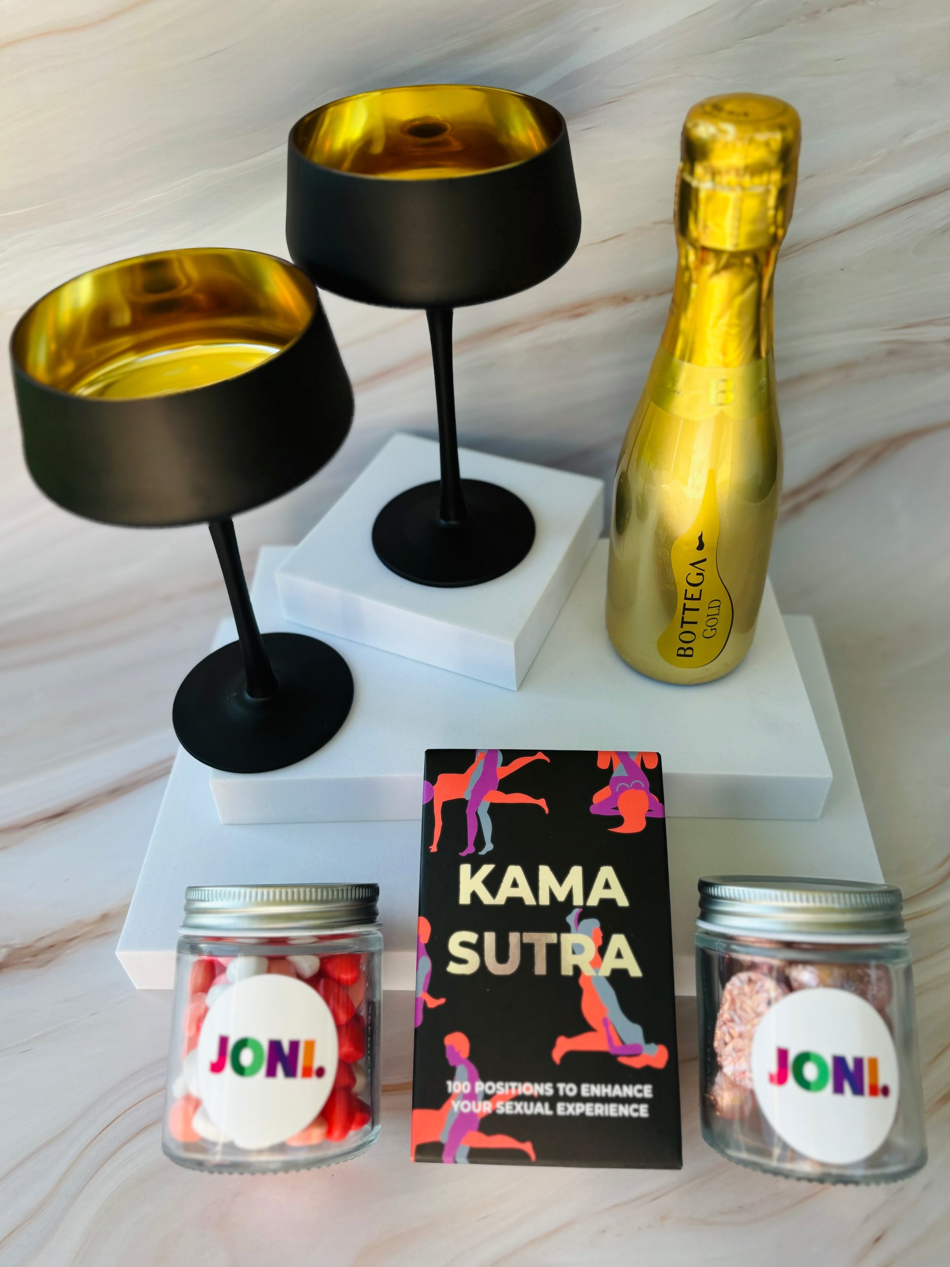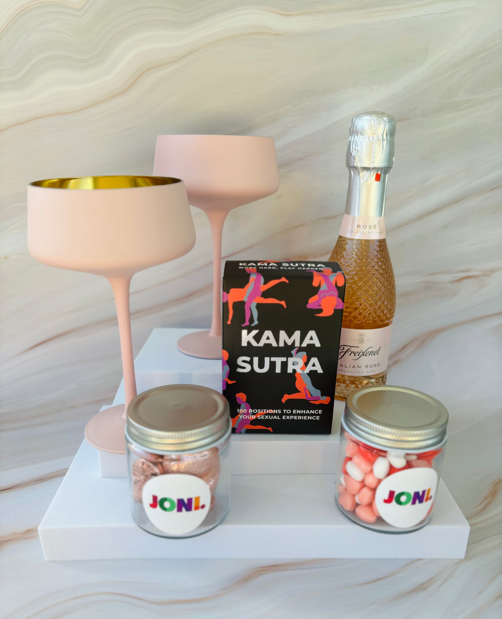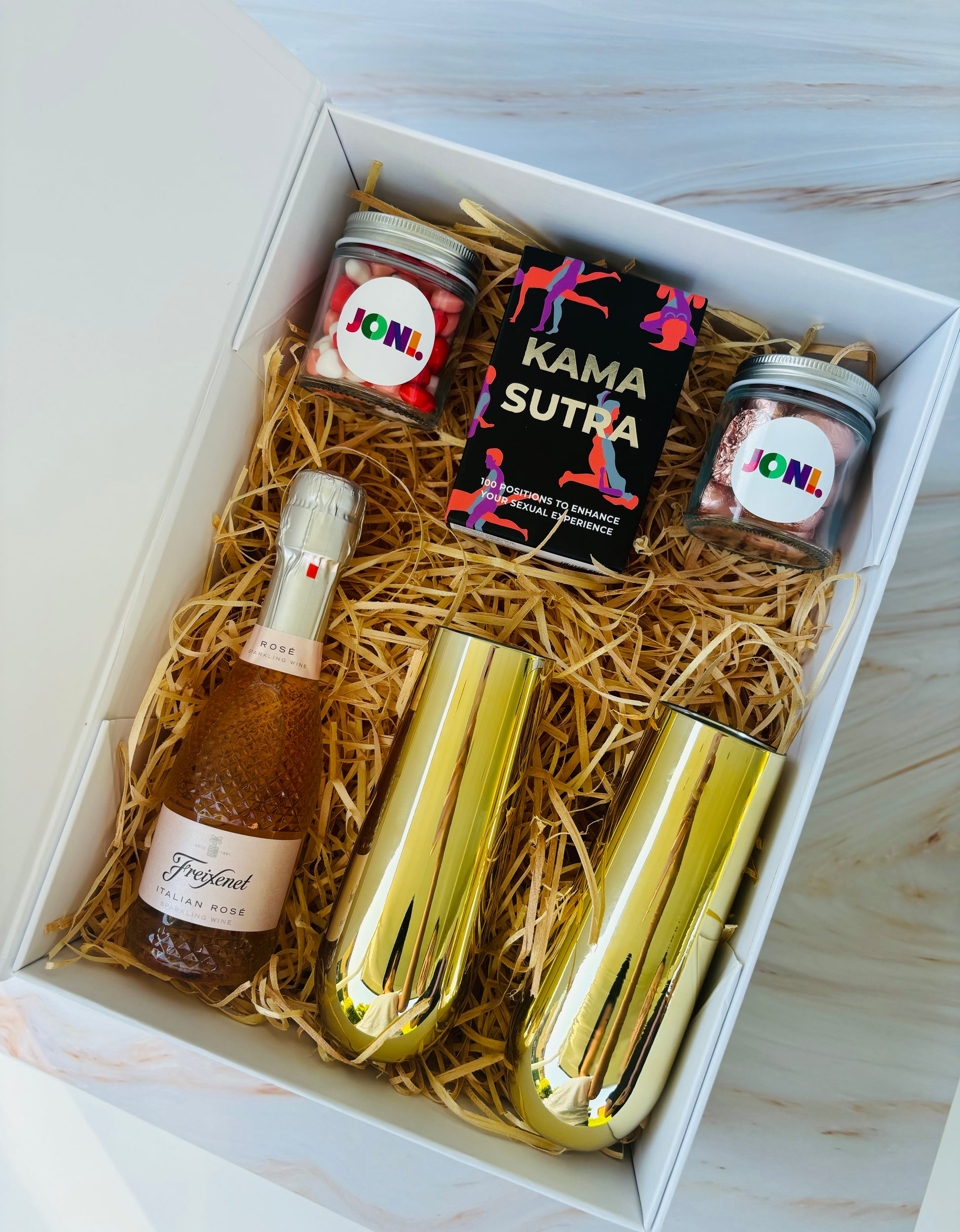 Introducing our alluring Naughty Gift Box - a tantalising blend of romance, sophistication, and playful intimacy. This curated set is designed to turn your celebration into an unforgettable journey with a bottle of prosecco, elegant glasses, and a set of Kama Sutra Cards. Elevate the mood and create a sensual experience that sparks connection and passion.