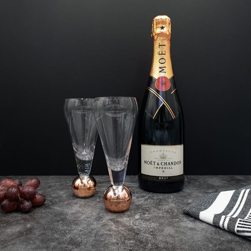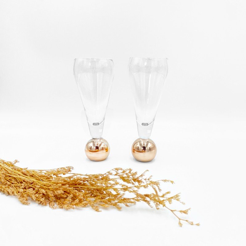 These gorgeous Copper Collection Stemless Champagne Glasses come as a set of 2 and feature a unique copper ball base detail and elegant flute so you can enjoy your favourite bubbly in style.