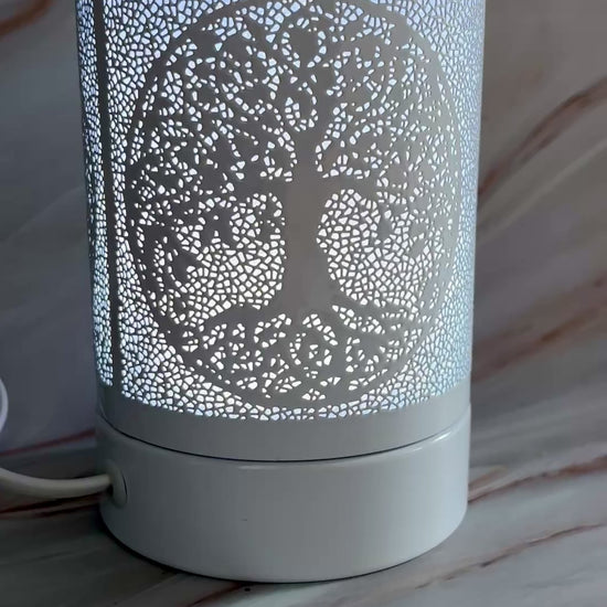 Bring warmth, fragrance, and a touch of nature-inspired design into your space with our beautifully crafted electric wax melt warmers. Featuring an intricate metal design inspired by classic wood art, these warmers create a serene and artistic atmosphere. When in use, the soft glow of colourful RGB lighting shines through the patterned exterior, adding a gentle ambience to any room.