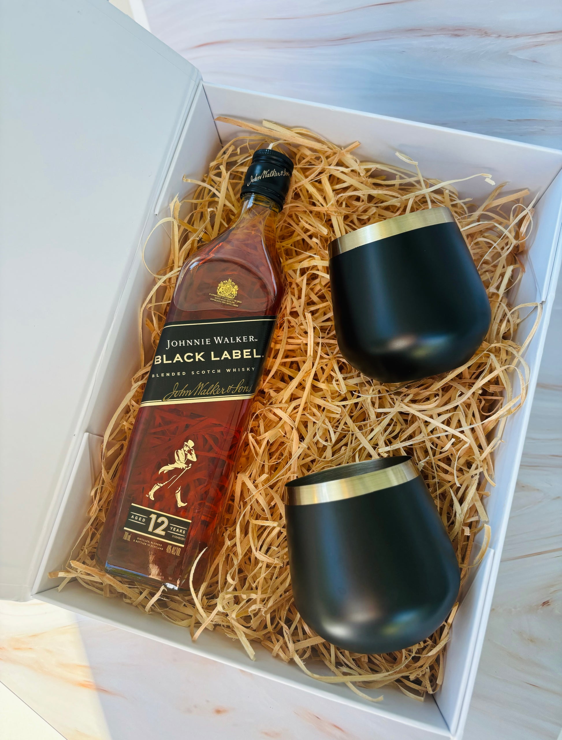 - 2 x Black Whisky Glasses